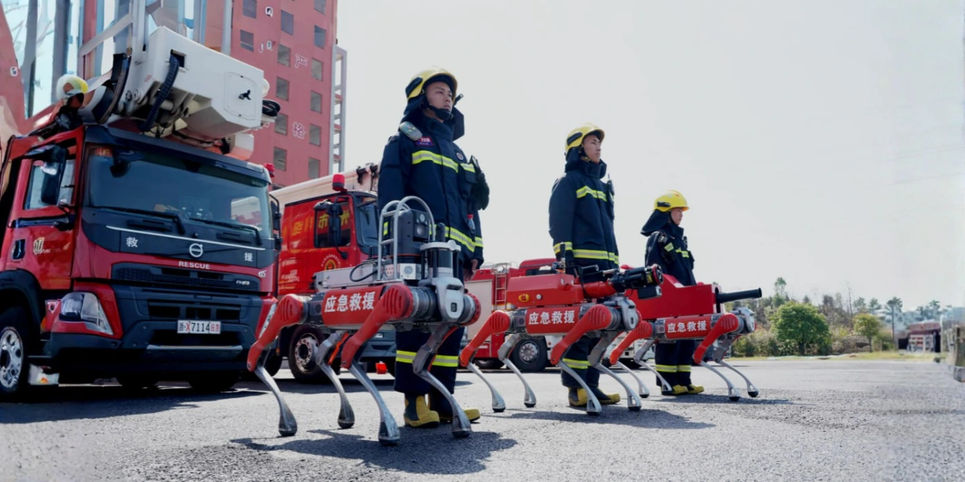 The B2 XF1 is an industrial quadruped designed for emergencies: thermal sensors, remote vision, and robust locomotion enable autonomous victim search and high-risk area assessment.