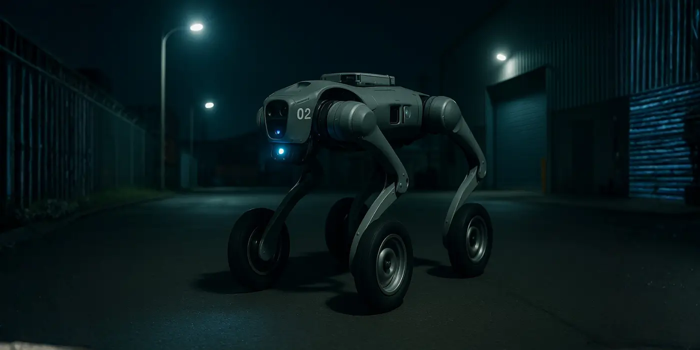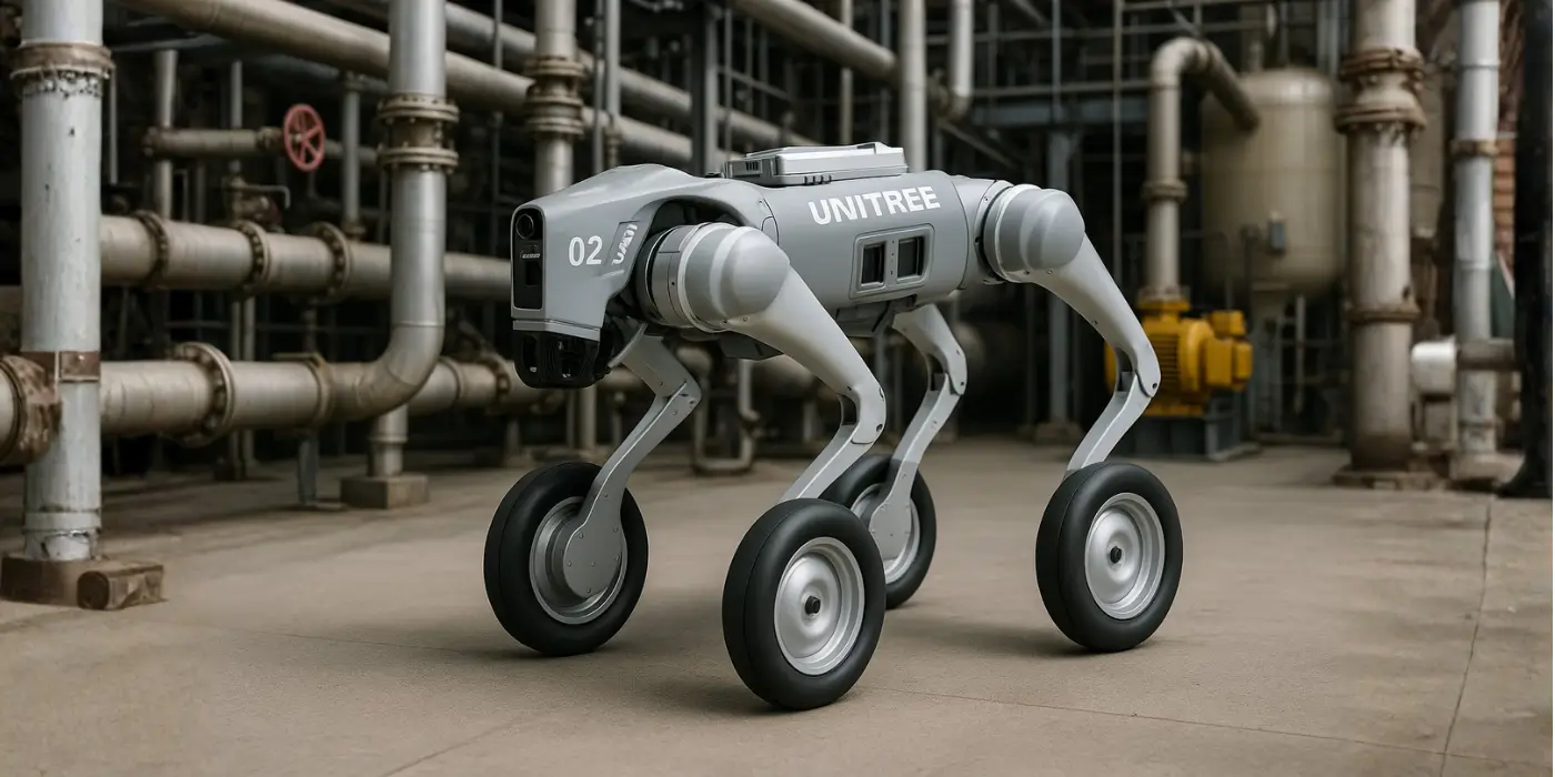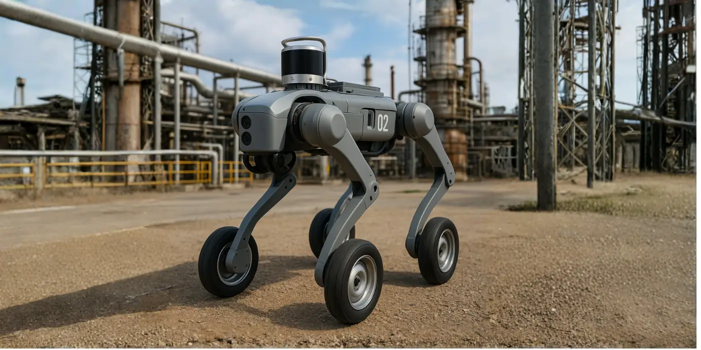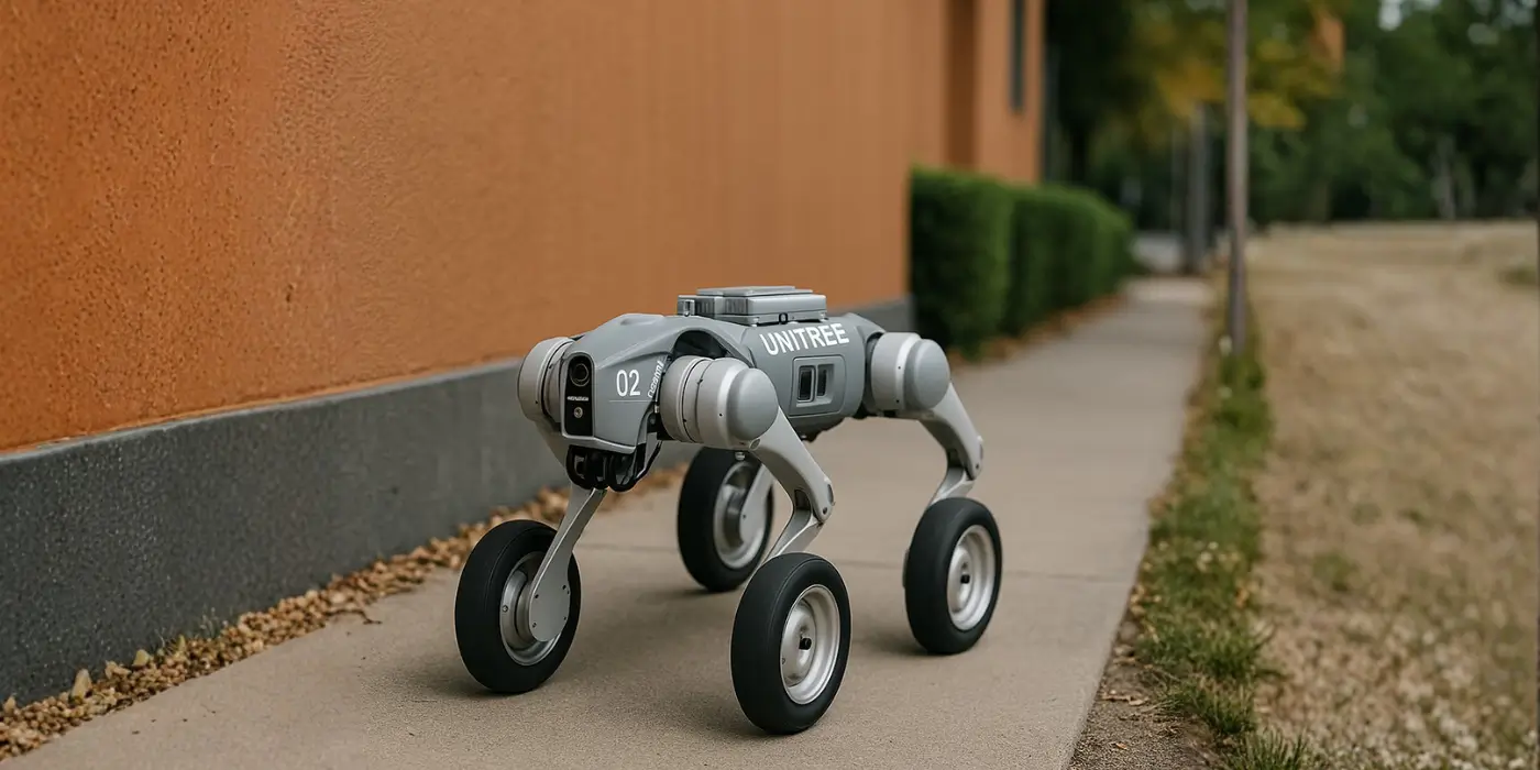 Quadruped robot with powered wheels that covers large areas with agility and low power consumption—ideal for patrols, logistics rounds, and long-duration outdoor missions.