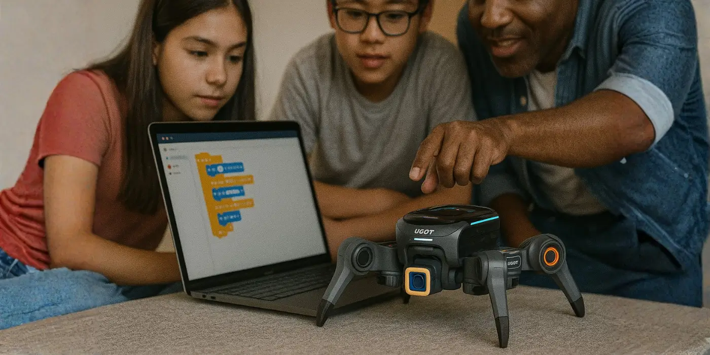 UGOT is a modular platform that allows the construction of multiple robot configurations from a single kit. It enables progressive learning in robotics, programming, and artificial intelligence through hands-on experimentation.