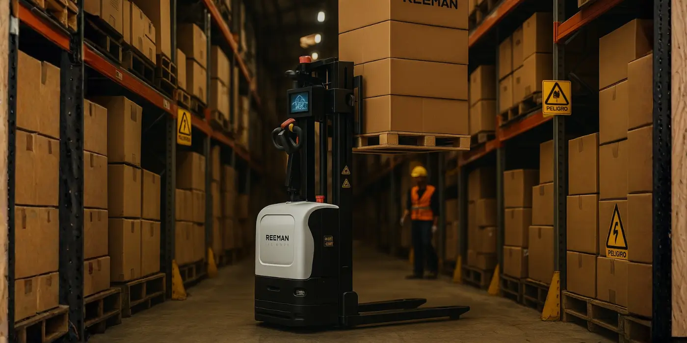 Montacargas autónomo que navega con precisión, se conecta a tus sistemas de gestión y eleva la seguridad mientras disminuye tiempos y costos en operaciones logísticas e industriales.
